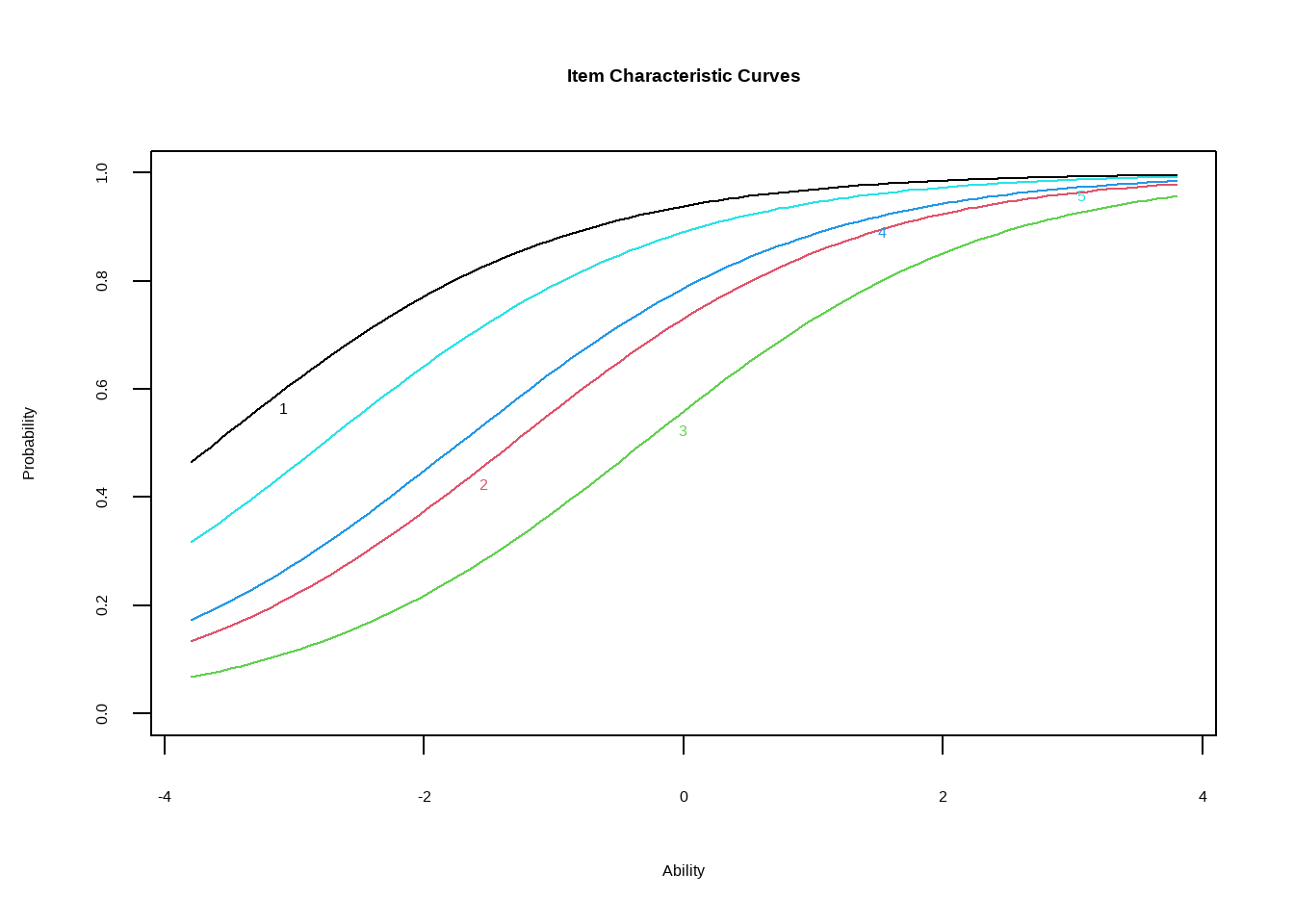 Для моделирования в рамках IRT есть две хороших библиотеки: более простая - ltm, и более сложная и комплексная mirt. Первую я предлагаю использовать для введения в вопрос, с помощью неё мы оценим модели, в которых ответ на вопрос принимает 2 возможных значения, 0 или 1 (верно/неверно, да/нет). Оценим три модели - с одним параметром, с двумя и стремя.